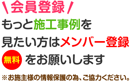 新規メンバー登録をいただくと、当ウェブサイト内の全ての「施工事例」が閲覧可能となります。もちろん登録は無料で、入会金や年会費は一切必要ありません。